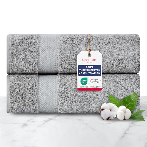 TEXTILOM 100% Turkish Cotton 2 Pcs Bath Towel Set, Luxury Bath Towels for Bathroom, Soft & Absorbent Hotel Quality Bathroom Towels Set (27 x 54 inches)- Grey