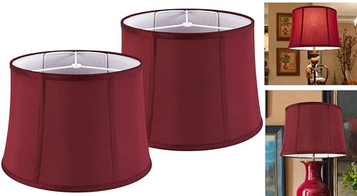 GOSO Burgundy Red Lamp Shades for Table Lamps and Floor Lamp,12x14x10 inch Spider Lamp Shade for Bedroom Decoration Replacement Lampshade Vintage, Drum Faux Silk Handcraft,Easy Assembly(Set of 2)