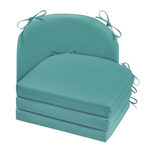 Cozyide Outdoor Chair Cushions, Waterproof Patio Seat Cushions with Adjustable Straps, Round Corner Patio Chair Cushions for Garden, Teal, 17x16x2 Inch (Pack of 4)