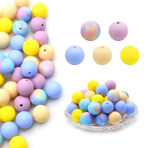 David Accessories Silicone Beads 15mm Bulk Round Beads for Keychain Pens Lanyards Bracelet Necklace Jewelry Making DIY Craft 50Pcs (Z)