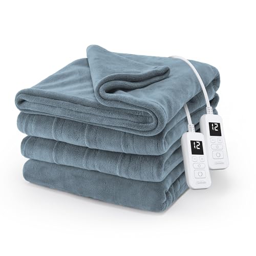Sunbeam Electric Royal Luxe Microplush Heated Blanket 12 Heat Settings, 12-Hour Selectable Auto Shut-Off, Fast Heating, Warm and Cozy, Ice Blue Color, Queen, 90" x 84"