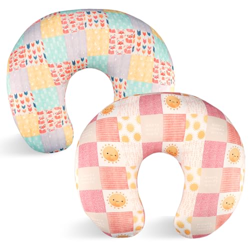 SWESEN 2 Pack Nursing Pillow Cover for Baby Girls, Breastfeeding Pillow Slipcover, Soft Stretchy Snug Fits On Infant Nursing Pillow, Machine Washable & Breathable, Fox & Sun
