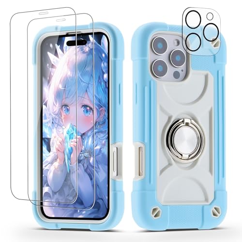 Cookiver for iPhone 16 Pro max 6.9 inch Case - Heavy Duty Shock Resistant Military Grade Rugged Case with Ring Stand, Glass Screen Protector and Camera Lens Protector (Ice Blue)