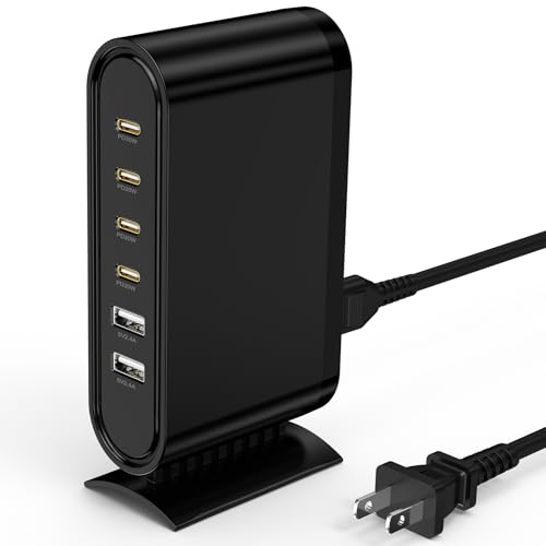 USB C Charger Block Charging Station,6 Port 4 Type C & 2 USB A Fast Charging Hub, Multi Device Wall Plug Cube Brick for Apple iPhone 16 15 Pro Max/14/iPad Pro/Samsung Galaxy S25 Ultra/S24+/S23/Android