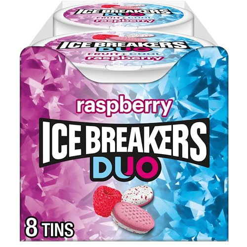 ICE BREAKERS Duo Fruit Plus Cool Raspberry Flavored Sugar Free Mints Pucks, 1.3 oz (8 Count)