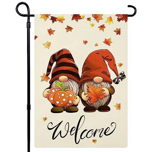 Fall Garden Flag Double Sided, Welcome Gnomes Fall Flag Yard Flag for Seasonal Outdoor Decoration 12x18 Inch