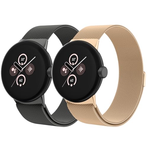 2 PACK Metal Band for Google Pixel Watch 3 41mm Bands/Google Pixel Watch 2/1 Bands Women Men, Stainless Steel Mesh Loop Adjustable Wristband Replacement Straps