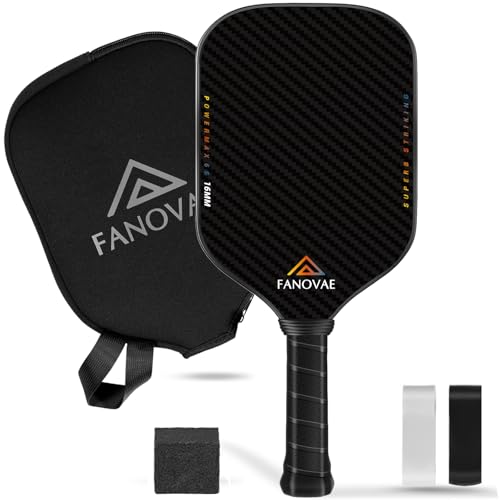 Fanovae Carbon Fiber Pickleball Paddle, 6K Raw Carbon Fiber Surface, CAS, Textured Carbon Grit Surface, High Grit & Spin,16MM PP Honeycomb Core, Includes Paddle Cover&Eraser, POWERMAX 6S