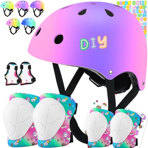 Comforhous Color Gradient Kids Bike Helmet and Pads Adjustable Helmet for Kids Protective Gear Set with Elbow Knee Pads Wrist Guards for Cycling Bicycle