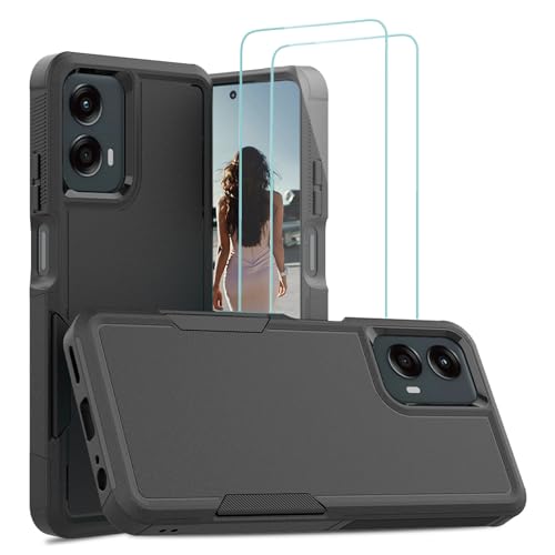 Jeylly for Moto G 5G 2024 Case, Moto G Play 5G 2024 Case with [2 Pack] Tempered Glass Screen Protector, Heavy Duty Shockproof Protective Hard PC Soft Bumper Slim Phone Cover for Women Men, Black