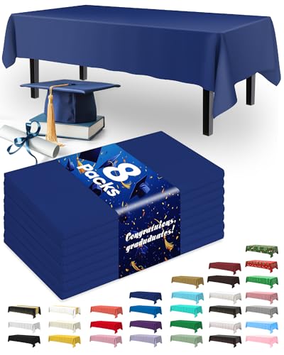 Pureegg Plastic Table Cloth Disposable 8 Pack, 54 x 108 Inch Table Cloths, Graduation Decorations Class of 2025, Graduation Party, Tablecloths, Rectangle, Plastic Cover, Leakproof & Sturdy, Navy Blue