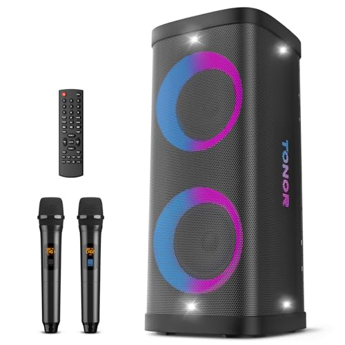 TONOR Karaoke Machine, 6.5" Portable PA System for Adults with 2 UHF Wireless Microphones, Bluetooth, with Disco LED Lights, Type-C/USB/TF, for Home and Outdoor Events, with Button Control, K61