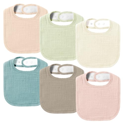AMAWMW Muslin Baby Bibs for Unisex Boys Girls 6Pack Soft Baby Bandana Drool Bibs Adjustable Newborn Bib for Drooling & Teething