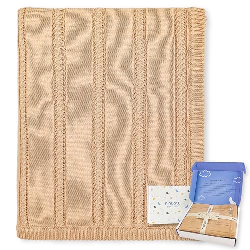 Pinuotu Cotton Twisted Rope Baby Blanket,Soft, Breathable, 31"x40" – Perfect for Swaddling, Crib & Stroller – Premium Gift for Newborns, Infants & Toddlers, Boys & Girl(Beige)