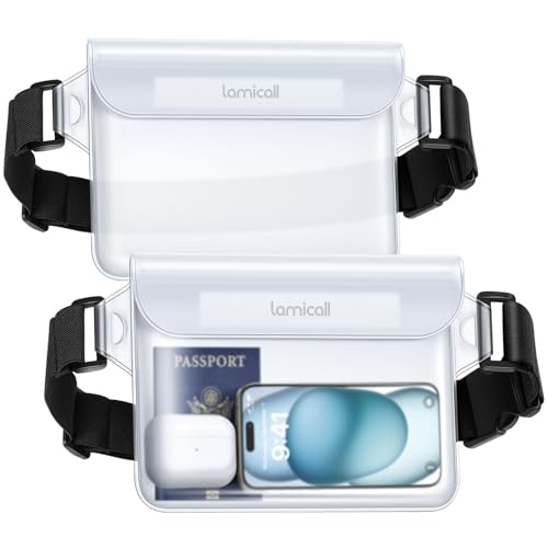 Lamicall Waterproof Fanny Pack Pouch - [2Pack] [2025 Elastic Waist Strap] IPX8 Dry Bags Water Proof Pouch for Swimming, Beach, Kayaking, Cruise Ship Essentials, 8.7” for iPhone 16 15 14 13 Pro Max