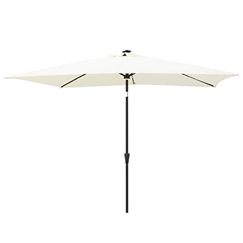 C-Hopetree 6.5 x 10 ft Rectangular Outdoor Patio Market Table Umbrella with Solar LED Lights, Ivory