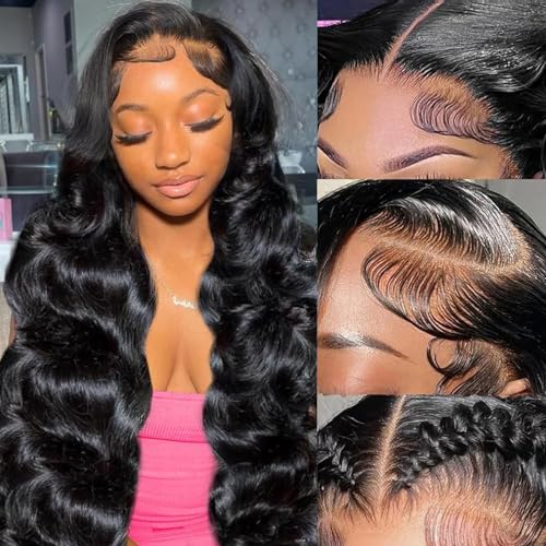 32 Inch 13x6 HD Lace Front Wigs Human Hair Pre Plucked 200 Density Body Wave Lace Front Wigs Human Hair 13x6 HD Lace Frontal Glueless Wigs for Women Bleached Knots Natural Black Body Wave Wig