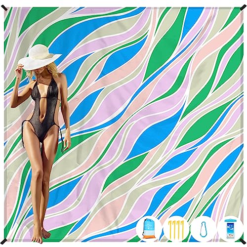 Famstar Beach Blanket Oversized Extra Large 78" X 81",Waterproof Sandproof Beach Blanket 1-7 Adults Lightweight Durable for Travel Camping Hiking Picnic