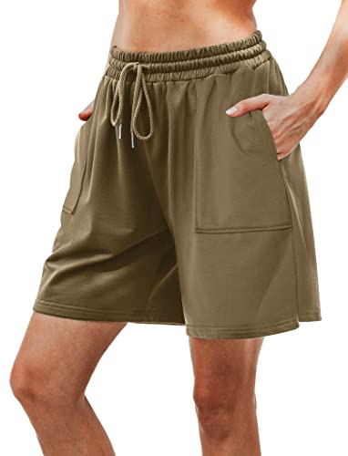 Cowasto Women's Sweat Shorts Casual Summer Athletic Shorts Elastic Comfy Running Shorts with Drawstring Taupe M