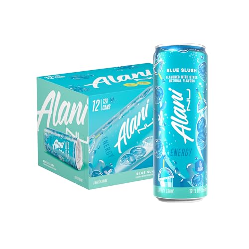 Alani Nu BLUE SLUSH, Sugar Free, Low Calorie Energy Drinks, 200mg Caffeine, Biotin, B Vitamins, Zero Sugar, 10 Calories, 12 Fl Oz Cans, 12 Pack
