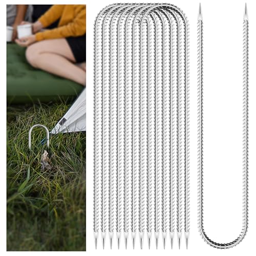 30 Pieces Trampoline Stakes Anchors High Wind Heavy Duty,U Shaped Garden Hooks Stakes for Ground,Trampoline Tie Downs Anchor Kit,Bounce Horseshoe House Stake,Rebar Camping Tent Stakes,12 Inch Long