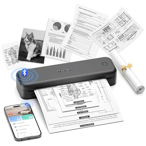 Phomemo M834 Portable Printer Wireless for Travel, Bluetooth Thermal Printer 8.5" x 11"&A4, Compatible with iOS,Android & PC,Inkless Mobile Printers for Travel,Office,School,Home,Gray