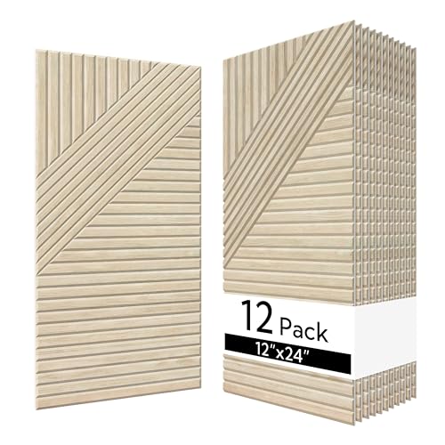 Olanglab Self-adhesive Acoustic Wall Panels 12 Pack, 23.6 x 11.8 per Acoustic Panels Sound Absorbing, Decorative Sound Panels for Home Studio and Office, Light Natural Oak Pattern, Style A