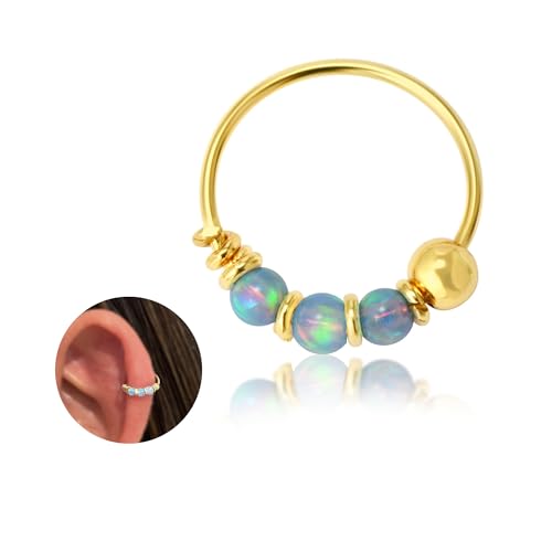 Miya Jewelry Handmade Gold Single 10MM Cartilgae Helix Piercing Hoop Earring with Trio Blue Opal, Gold Plated over Sterling Silver Very Small Thin 22Gauge Hoop for women (GoldPlated-Blue)