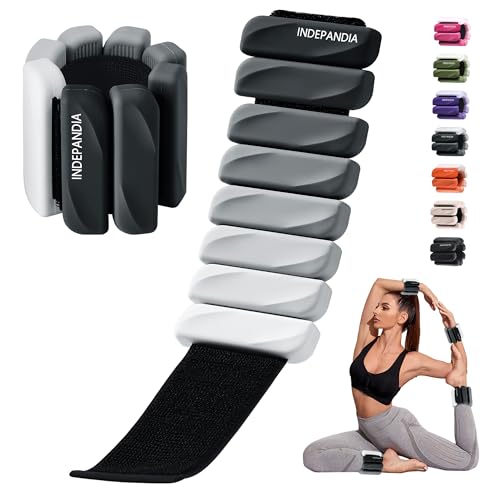 INDEPANDIA Adjustable Ankle & Wrist Weights for Women & Men, Set of 2 (2lb Each), Silicone Weighted Bangles for Arm, Leg, Walking, Fitness, Yoga, Pilates Workout Gradient Black