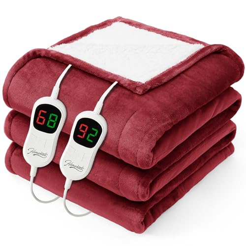 Homemate Electric Heated Blanket King - 100"x90" Heating Bed Blankets Throw with 10 Heating Levels 8 Hours Auto Off Fast Heating Over-Heated Protection Ultra Soft Warm Flannel ETL Certified Red