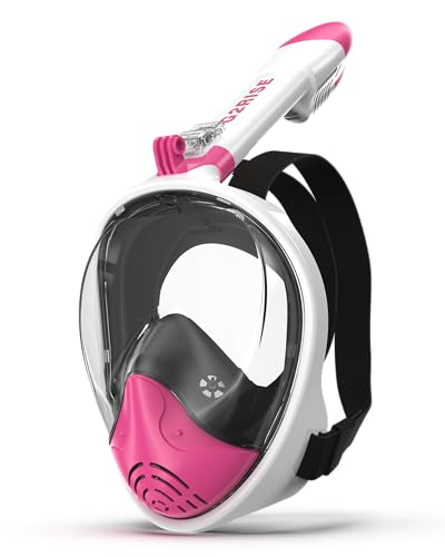G2RISE Full Face Snorkel Mask Adults Snorkeling Set Gear with Detachable Camera Mount, Safe Breathing, Anti Fog & Anti Leak (White Pink,SM)