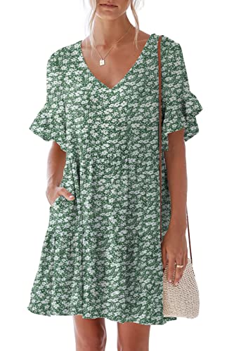nclook Womens Summer Casual Dresses Sweet Cute V Neck Mini Dress with Pockets Ruffle Short Sleeve