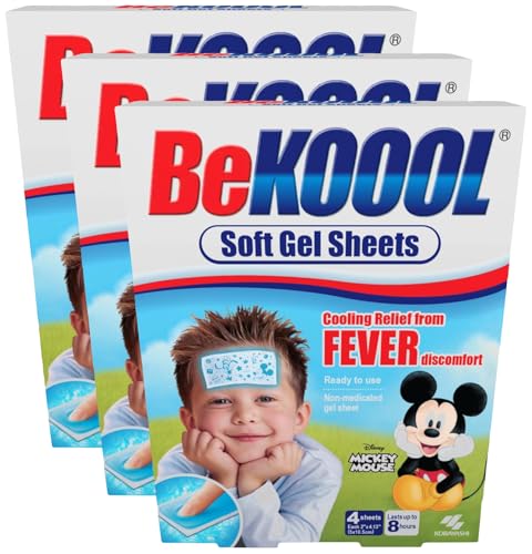 BEKOOOL Immediate Cooling Fever Reducing Soft Gel Sheets for Kids - 4 Count, White (00101) (Pack of 3)