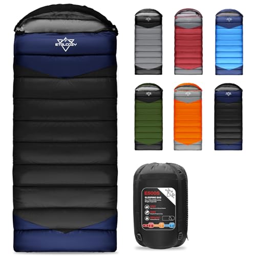 ETGLCOZY 0 Degree Camping Sleeping Bags for Adults, Cold Weather Portable Lightweight Sleeping Bag for Kids Girls Boys with Draft Tubes, 33.5in Wide Fits up to 6ft 6in Tall(Black)