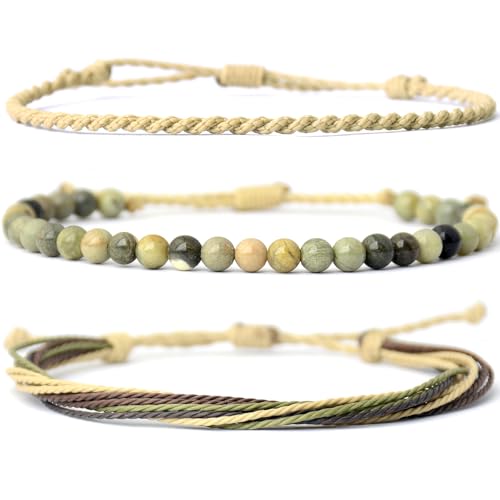Handmade Natural Stone Beaded Healing Bracelet Gift for Men Adjustable Rope String Bracelet (Silver Leaf Stone, Adjustable)