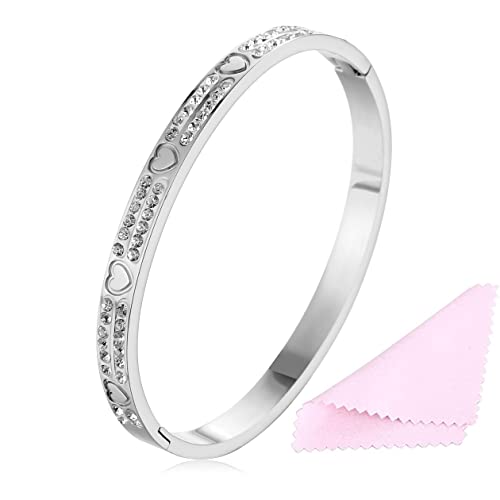 YCSLYW Women's Stainless Steel Bracelet Jewelry Crystal Bracelet With Cube Zircon Hinge Jewelry oval Bangle Christmas Valentines Birthday Gifts for Women