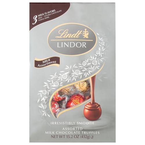 Lindt LINDOR Milk Assorted Chocolate Candy Truffles, Chocolate Candy with Smooth, Melting Truffle Center, 15.2 oz. Bag (Pack of 2)