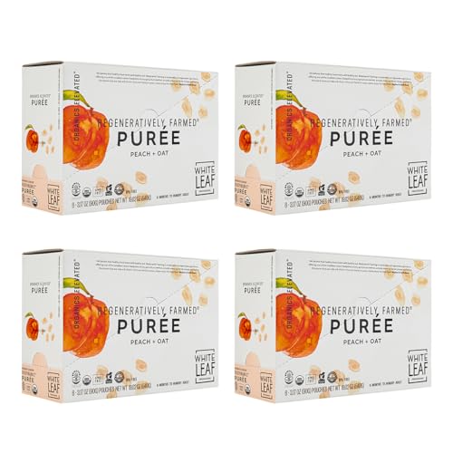 White Leaf Provisions Organic Purees/Baby Food Pouches - Fruits, Veggies & Grains, Toddler snack, Regeneratively Farmed, No Added Sugar, Non-GMO, BPA-Free Pouches 3.17 oz (Pack of 24, Peach + Oat)