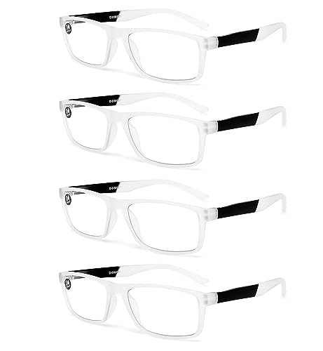 DONGDI Blue Light Blocking Reading Glasses 4 Pack Computer Readers for Women Men,Anti Glare UV Ray Filter Eyeglasses… (4pack-white, 4.00)