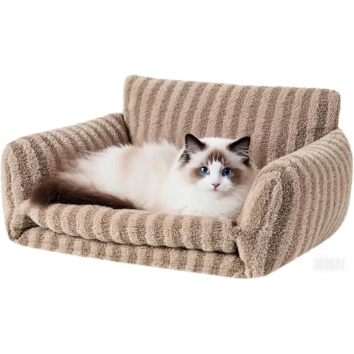 Hollypet Cat Bed Fluffy Plush Mutifuctional Double-Layer Soft Pet Couch Orthopedic Sofa Nest Beds for Small Cats and Dogs, Khaki (25x20x13 inch)