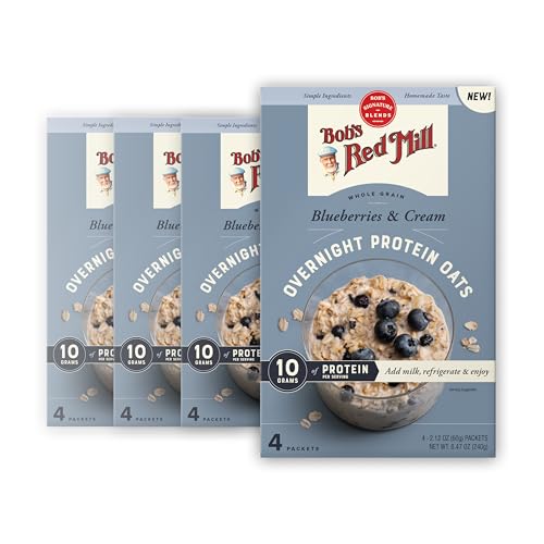 Bob's Red Mill Overnight Protein Oats, Blueberries & Cream, 16 Packets Total, Non-GMO, Gluten Free, Whole Grain