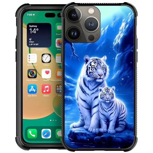CARLOCA Compatible with iPhone 13 Pro Case,White Tigers Blue Dream iPhone 13 Pro Cases Graphic Design Shockproof Anti-Scratch Drop Protection Case