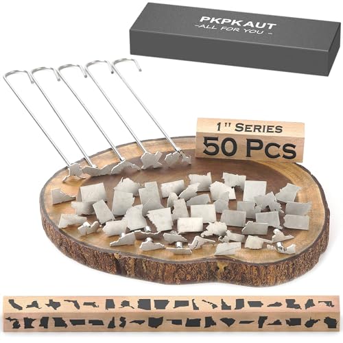PKPKAUT 50Pcs Mini 1" Branding Irons, All 50 USA States Shapes Custom Wood Branding Iron Personalized for Wood Working, Leather Hats, Felt, Cowhide, BBQ & Bread Logo, Steak Branding Iron for Food