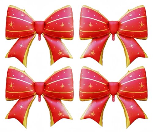 38 Inch Red Gold Foil Bow Balloon – Large Mylar Bowknot Balloon for Birthday, Wedding, Grand Opening, Valentine’s Day, Christmas Party Decorations – Oversized Elegant Metallic Decor