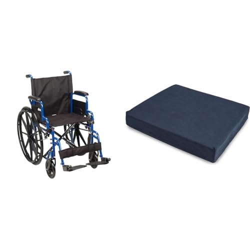 Drive Medical Blue Streak Wheelchair with Flip Back Desk Arms & DMI Seat and Chair Cushion for Office Chairs, Wheelchairs, Scooters, Kitchen Chairs or Car Seats