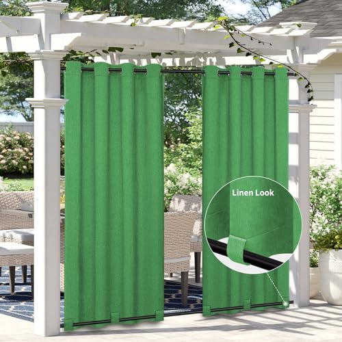 Easy-Going Linen Look Outdoor Curtains Waterproof Windproof Porch Curtains, Soft Thicken Outdoor Privacy Curtains for Patio, Gazebo, Grommet Top and Tab Bottom Drape, 1 Panel, 54x120 inch, Green