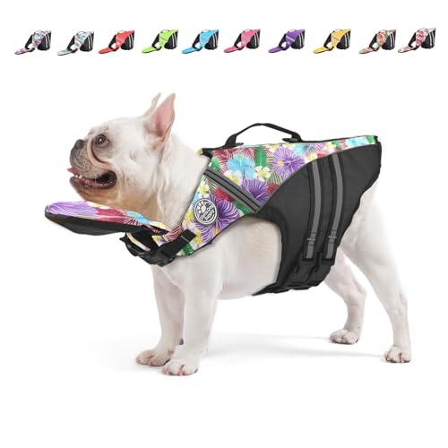 Mklhgty Dog Life Jacket, Reflective Dog Life Vest with Removable Neck Float High Buoyancy for Swimming and Boating, Ripstop Pet Safety Swimsuit Rescue Handle for Small Medium Large Dogs