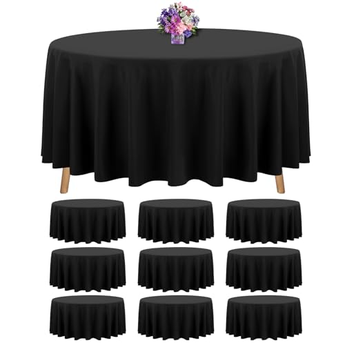 10 Pack Round Tablecloth Black Tablecloths 108 Inch,Circle Polyester Table Cloth,Washable Fabric Stain and Wrinkle Resistant Premium Round Table Cover for Wedding Parties Banquet Reception Dining