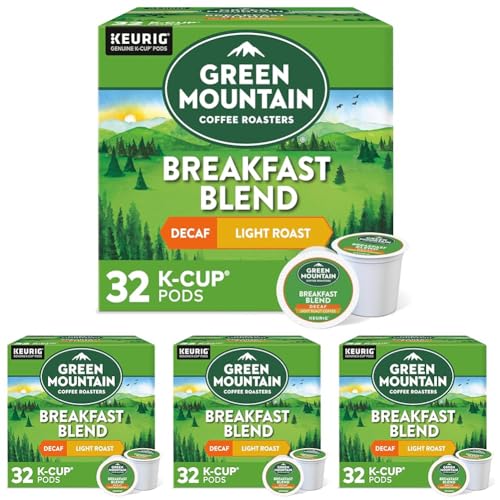 Green Mountain Coffee Roasters Decaf Breakfast Blend, Single-Serve Keurig K-Cup Pods, Light Roast Coffee, 32 Count (Pack of 4)