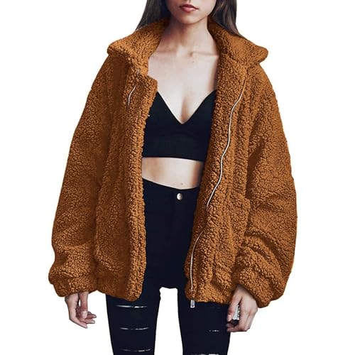 PRETTYGARDEN Women's Fashion Winter Coats Sherpa Fleece Faux Fur Shearling Oversized Trendy Jackets Warm Outerwear Clothing (Golden,Small)